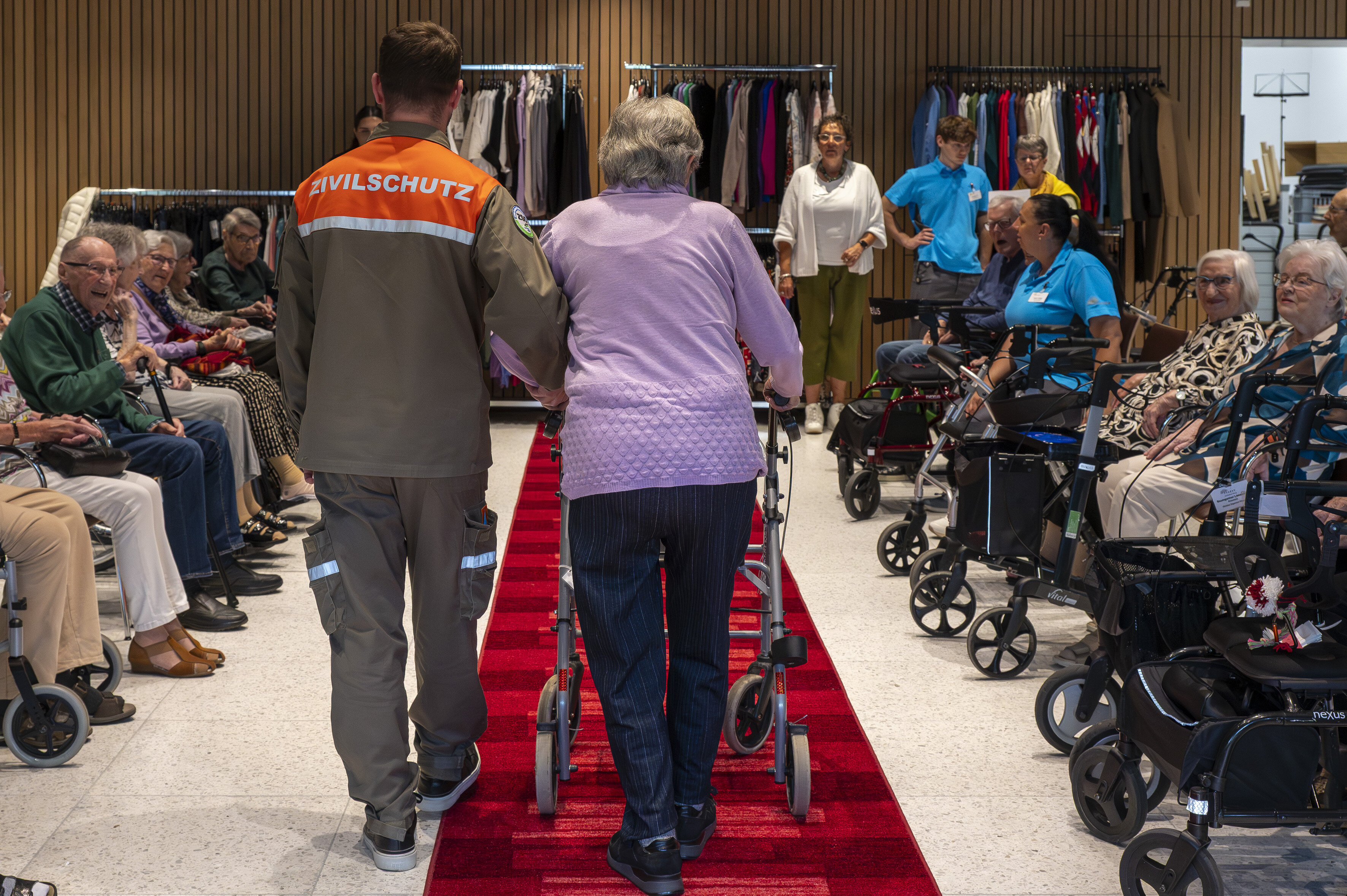 Ein besonderes Highlight der Woche war die Modenschau. Die stilvollen Outfits stellte die Mode-Boutique «Seniovita» aus Nussbaumen zur Verfügung. Geschäftsführerin Shqipe Salihi und ihre Tochter Merisa Salihi, die die Show herzlich und schwungvoll moderierte, verliehen dem Anlass einen persönlichen Charakter. Gemeinsam mit den Zivilschützern wagten die Bewohnerinnen und Bewohner den mutigen Schritt auf den Catwalk – voller Charme, Selbstbewusstsein, sichtbarer Freude und manch verborgenem Talent.